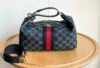Chic and timeless, this top-handle bag from Gucci features the signature monogram canvas paired with the iconic green and red stripe for a classic statement. The structured silhouette is complemented by smooth leather trim, a secure zip closure, and a detachable strap for versatile wear.